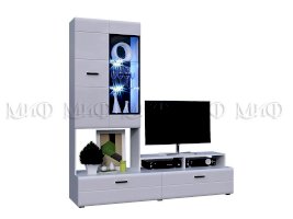 Изысканная, белоснежная с приятным блеском гостиная, несомненно украсит собой любую квартиру или дом. В гостиной есть все необходимые элементы для красивого оформления комнаты. Фасады с фрезеровкой и стеклянные витрины создают современный и стильный образ вашему дому.