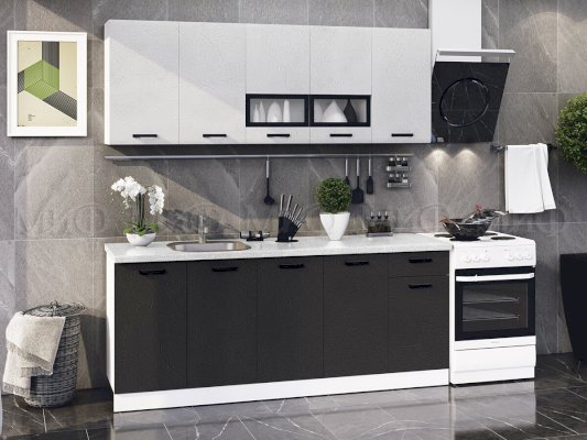 Модульная кухня Рио Пластер Бьянко/Пластер Блэк (Миф)