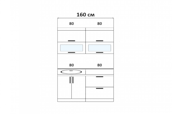 Кухонный гарнитур Монако 1,6 м Компоновка 2 (Миф)