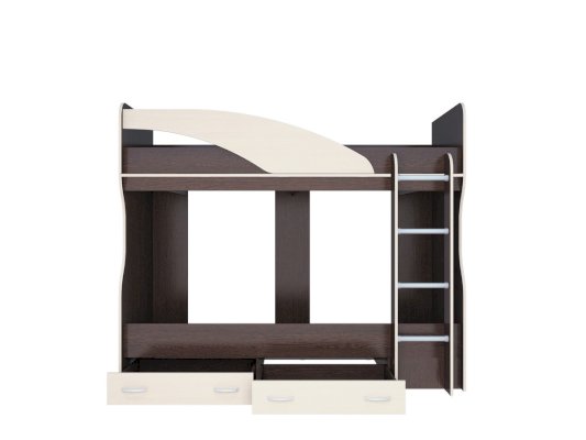 - Кровать-2-х ярусная имеет в своем составе имеет два спальных места сверху и снизу, лестницу, и два выдвижных ящика снизу