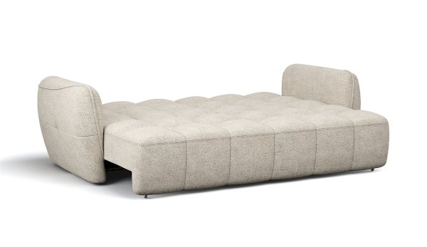 Современный диван с эксклюзивным дизайном, комфортом и функциональностью. Плавный, округлый силуэт, подлокотники с декоративным кантом, мягкое стеганое сиденье с глубокой посадкой и обивка создают необыкновенный уют и роскошную обстановку. Две большие подушки регулируют удобство посадки, после сидения быстро восстанавливают первоначальную форму. Диван оснащен надежным и легким в раскладке механизмом тик-так для каждодневного использования. Размер спального места соответствует полноценной кровати, большой бельевой короб для хранения вещей – приятное дополнение к нему.