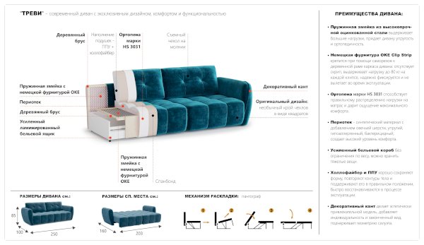 Диван Треви-2 (Империал) продается в интернет-магазине mebel-online-sevastopol.ru по цене 92 146 руб. Есть доставка по Севастополю и Республике Крым. Возможность подъема на этаж и сборки уточняйте у менеджера по телефону 8(800)505-27-11.